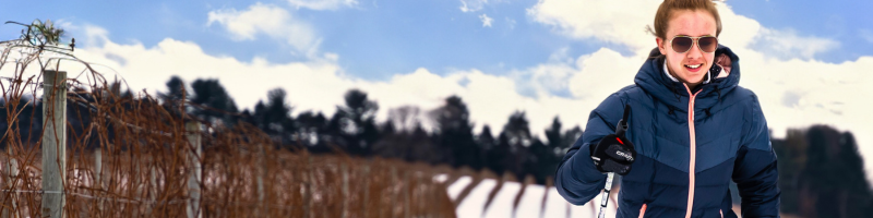 The eastern loops offer some rolling hillsides that beginners may find challenging, but overall the rest of the course is very approachable for all. There is a special loop for snowshoers, and it is a single snowmobile path that begins just south of the tasting room, entering the vines immediately and going due south to the woodlot before looping back to the tasting room along our eastern high ridge of Riesling and Cab franc. Apres Ski with some warm mulled wine or a bowl of local made soup! Be safe & have fun.